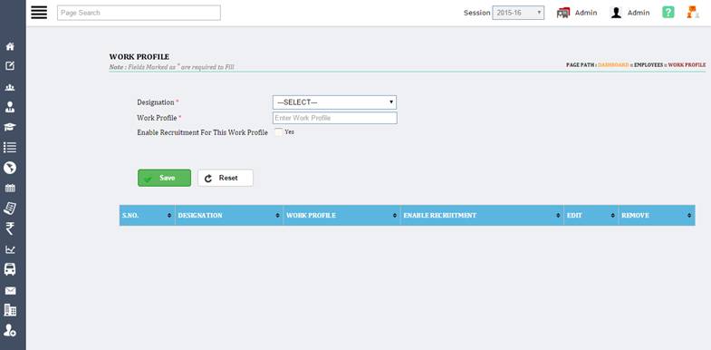 you’ll find the fields like Designation, Work Profile and Enable Recruitment