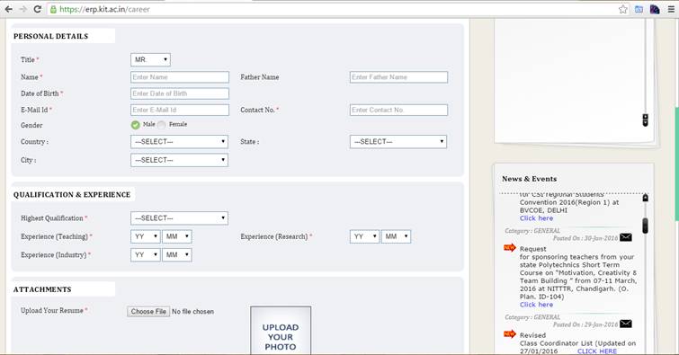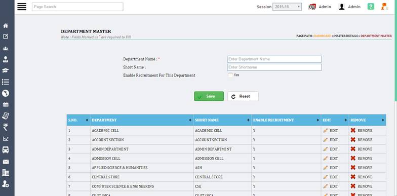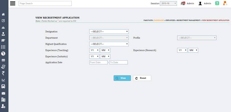 module allows the administrator/in-charge of the ERP to process the recruitment