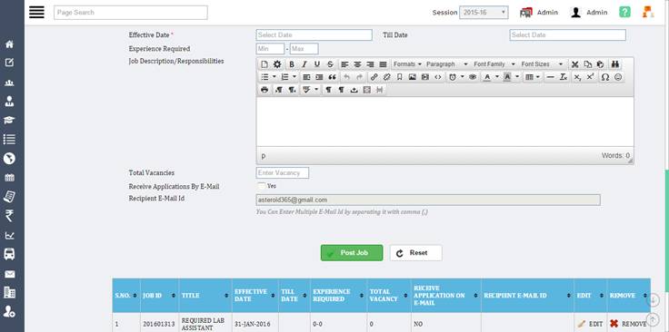 the above details, you can proceed to create the vacancy. Creating Vacancy is